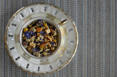 To tie the higher sweetness and lower earthy notes together, I opted to blend in orange peel (tart-sweet, yet full-bodied), marigold and blue cornflower (grassy and delicately airy-smoky). These ingredients rounded out the blend in three ways: