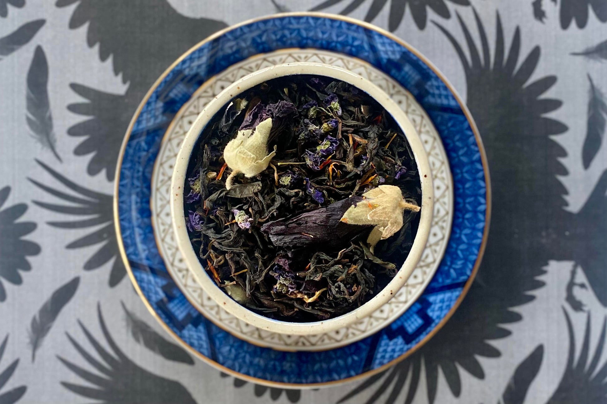 Ingredients: Black teas, fireweed, hollyhock, sweet violet, safflower petal, natural black currant and vegan cream flavoring, additional natural flavoring