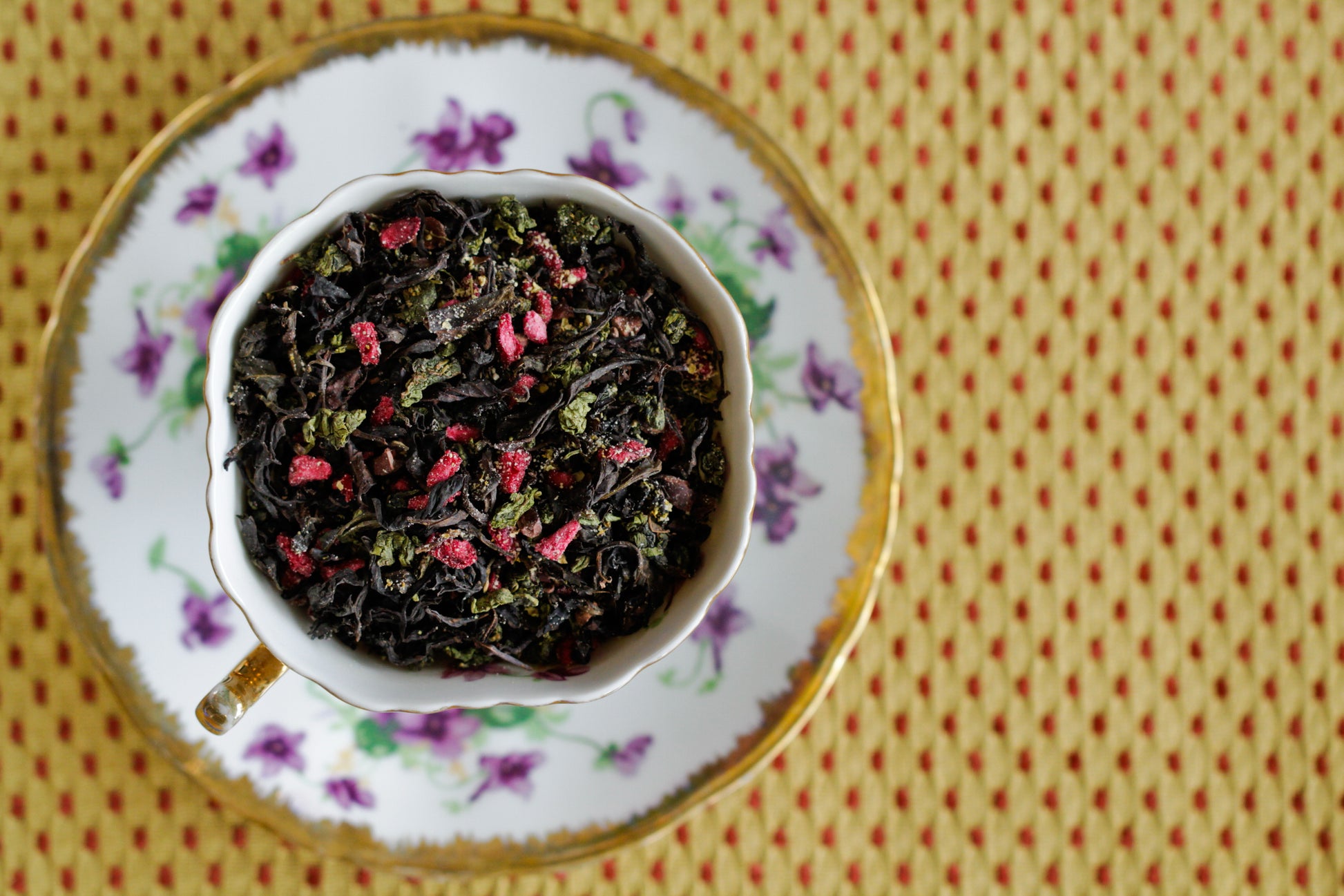Ooh-La-Long: Oolong teas, cacao nib, honey granules, pomegranate, elderflower, natural vanilla flavoring