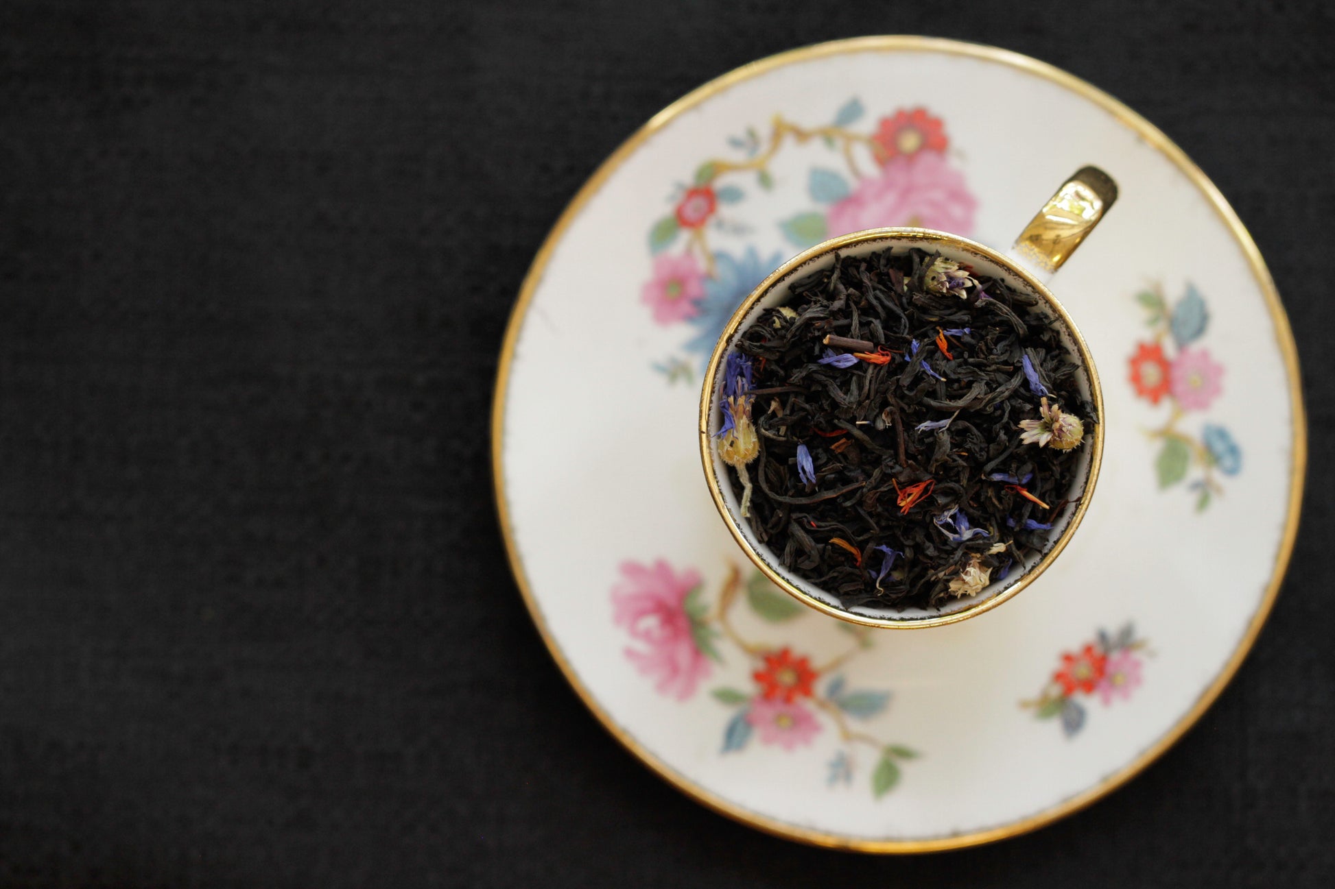 Ingredients: Black tea, blue cornflower, safflower petal, natural black cherry and vanilla flavoring, additional natural flavoring
