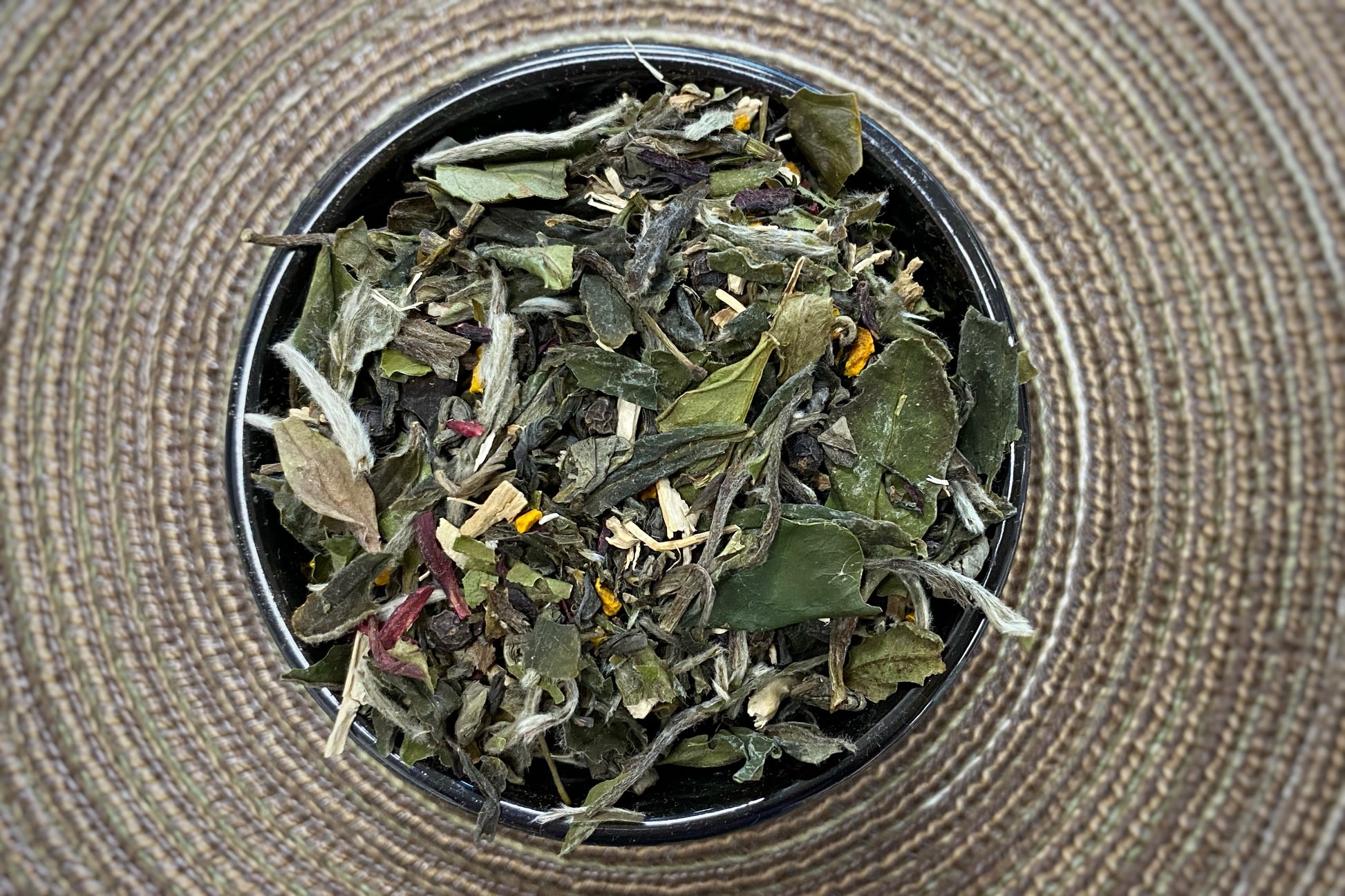 Ingredients: Green tea, white tea, chicory root, hibiscus, black peppercorn, turmeric, jasmine essence