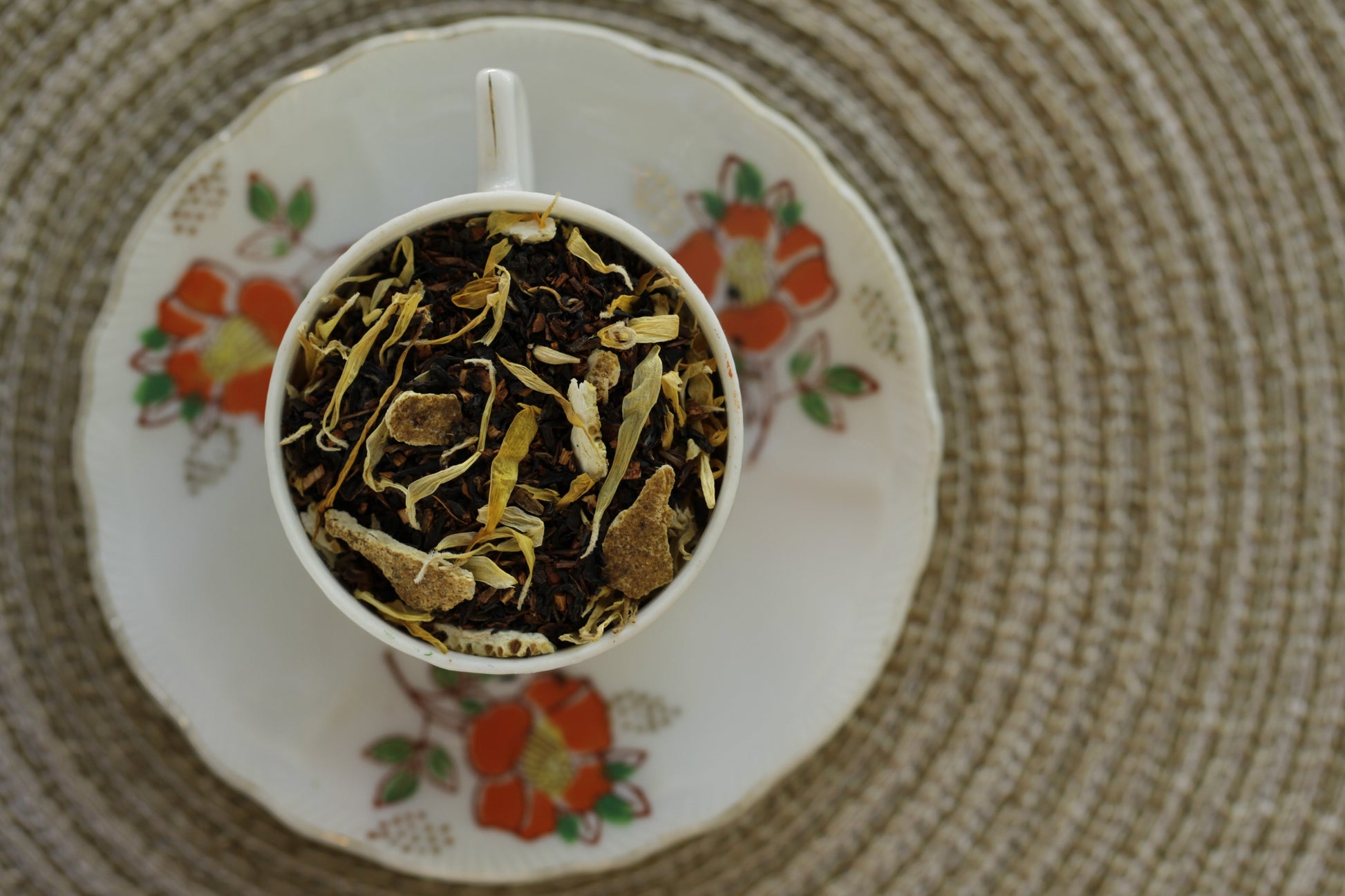 Ingredients: Rooibos, black tea, orange peel, marigold, natural flavorings