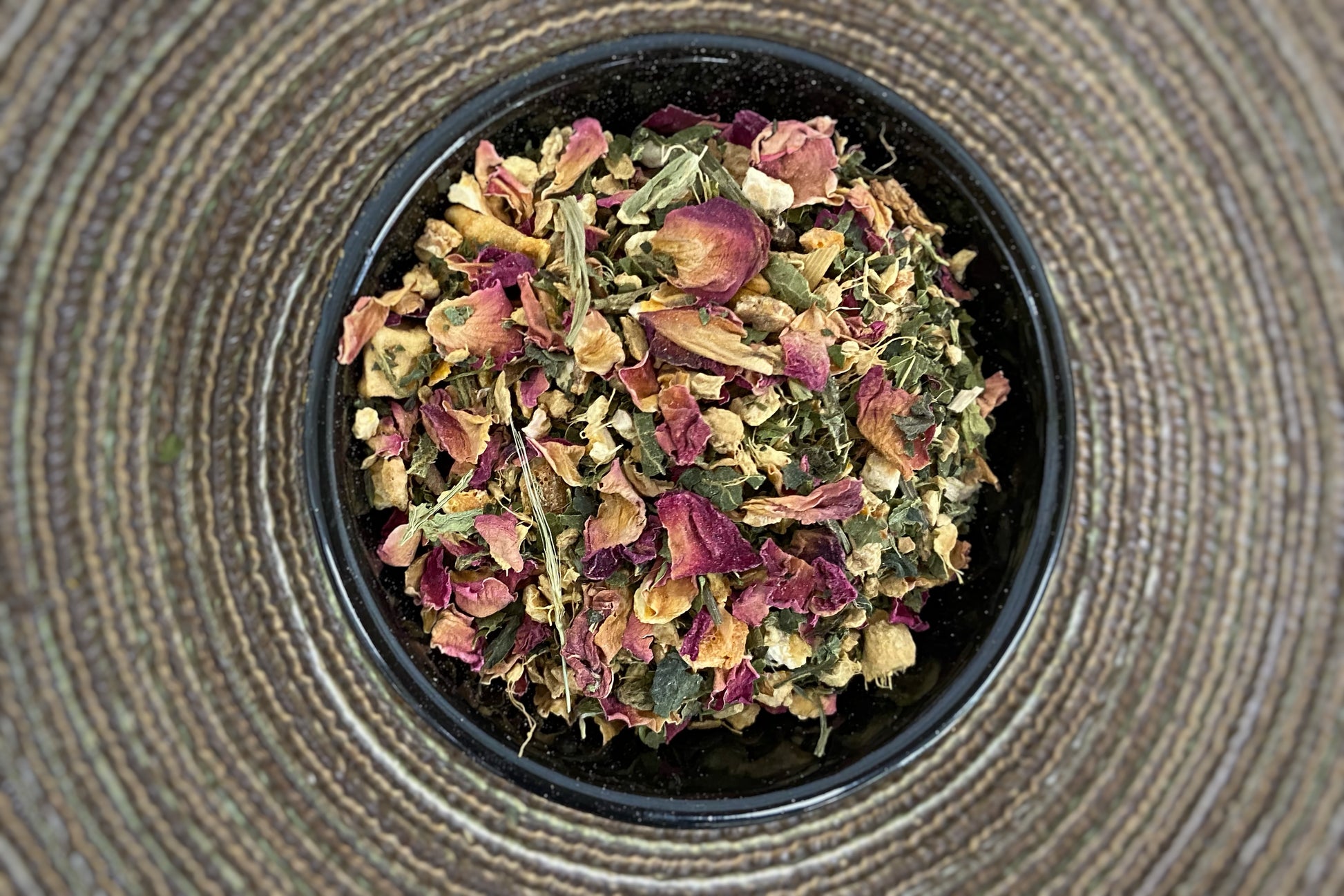 Ingredients: Ginger, orange peel, nettle leaf, apple, rose petal, spearmint