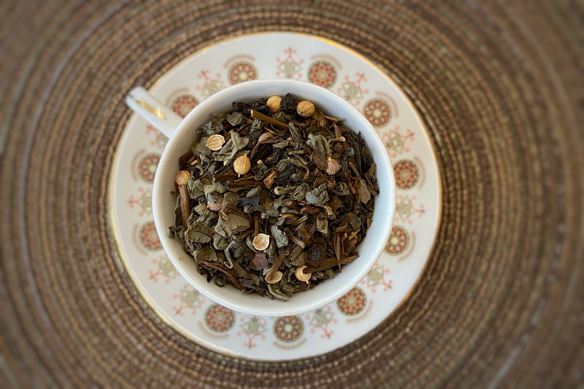 Ingredients: Green tea, roasted green tea, black tea, coriander, black peppercorn, pine smoke
