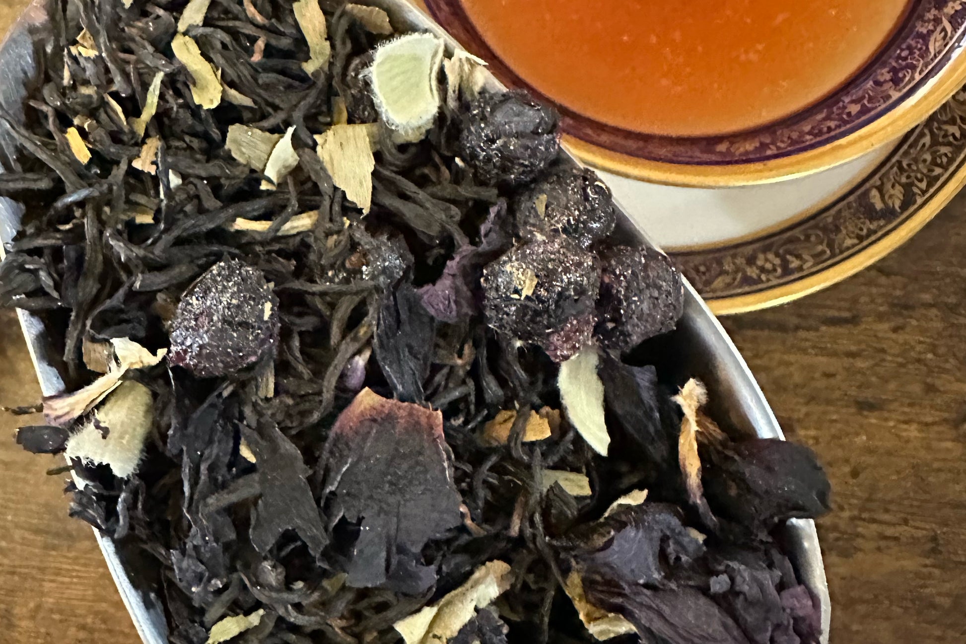 Ingredients: Black tea, hollyhock, blueberry, ginkgo, rose gold lustre dust*