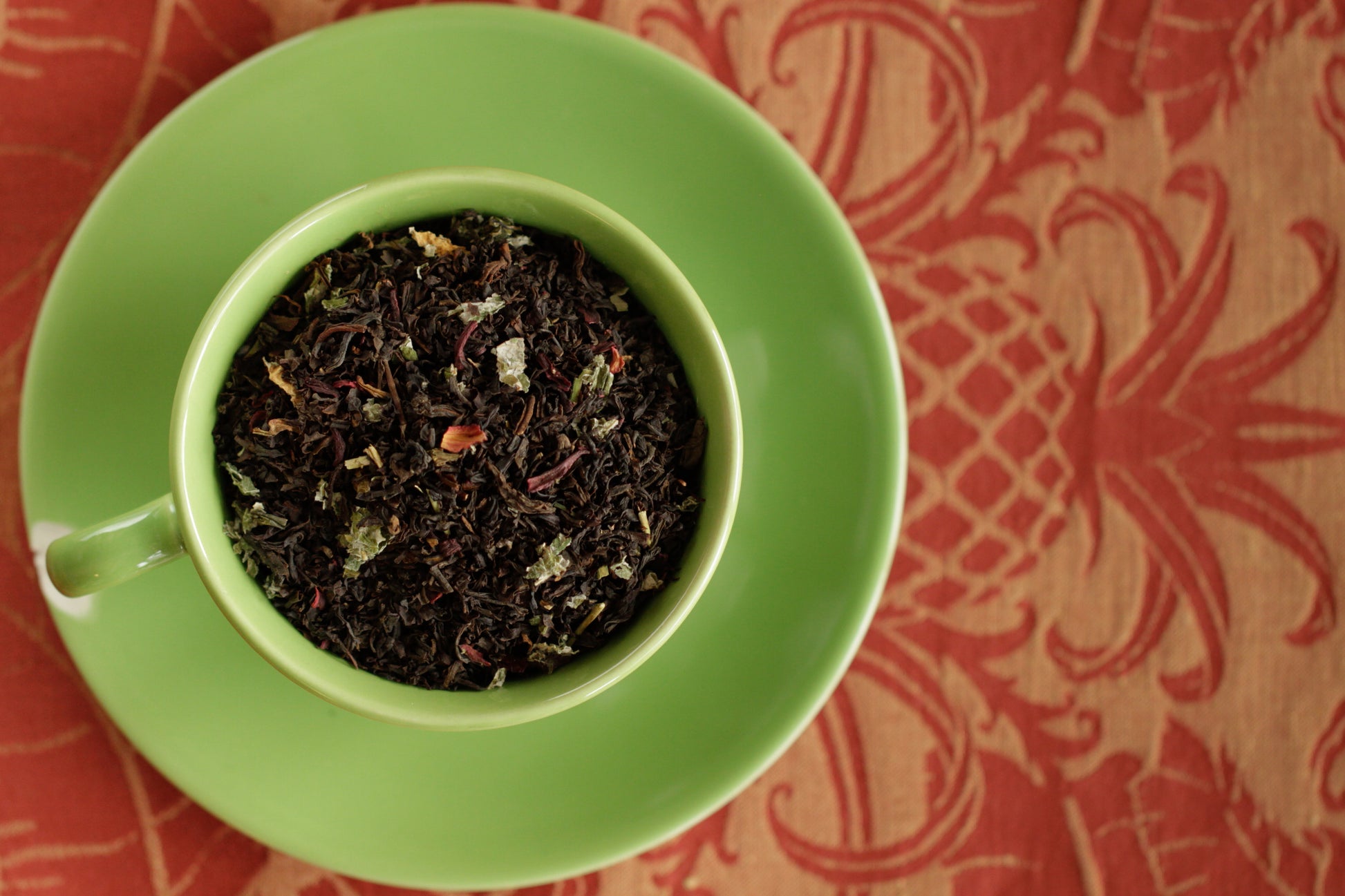 Ingredients: Black tea, hibiscus, raspberry leaf, natural peach flavoring