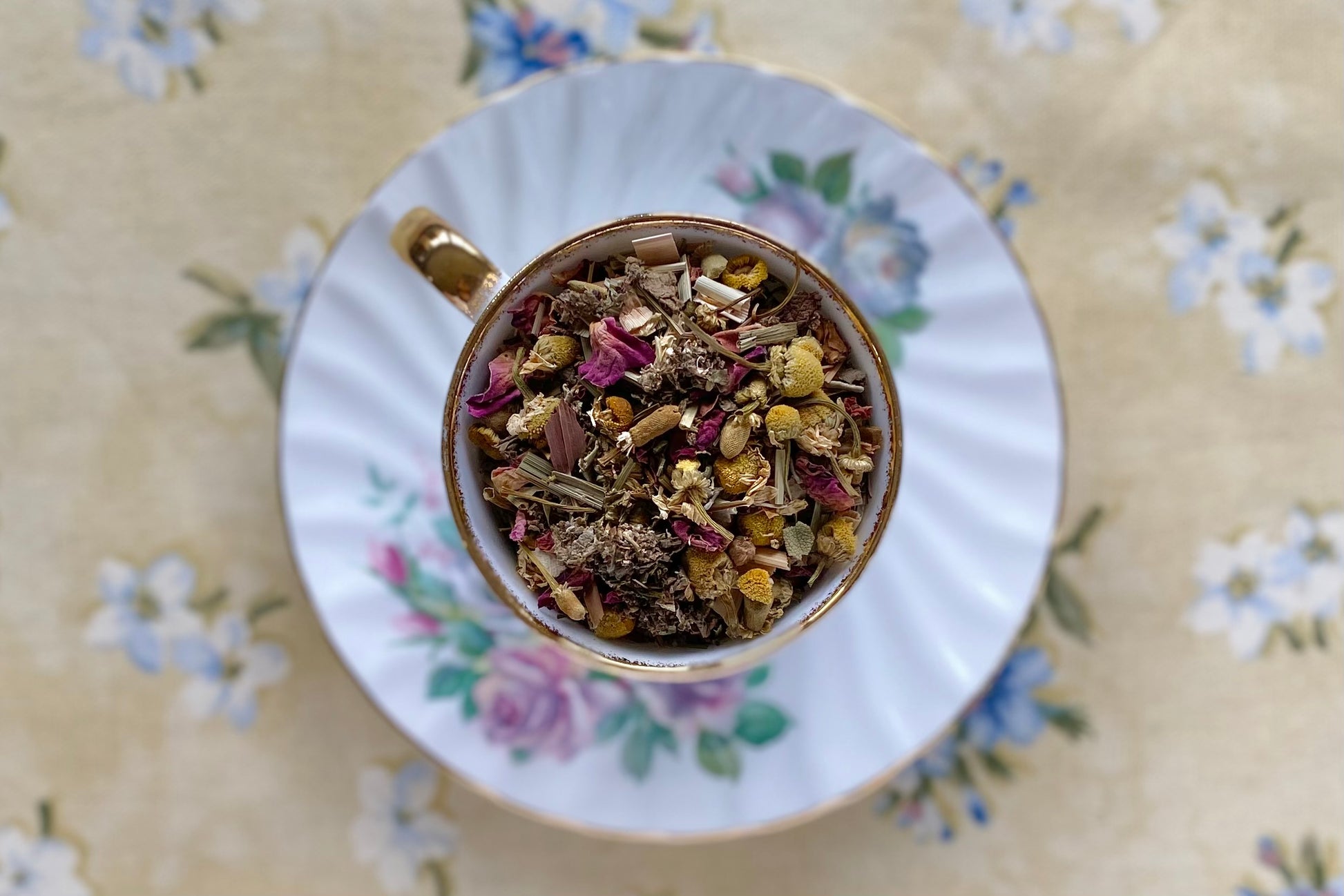 Ingredients: Chamomile, lemongrass, raspberry leaf, rose petal, green sage