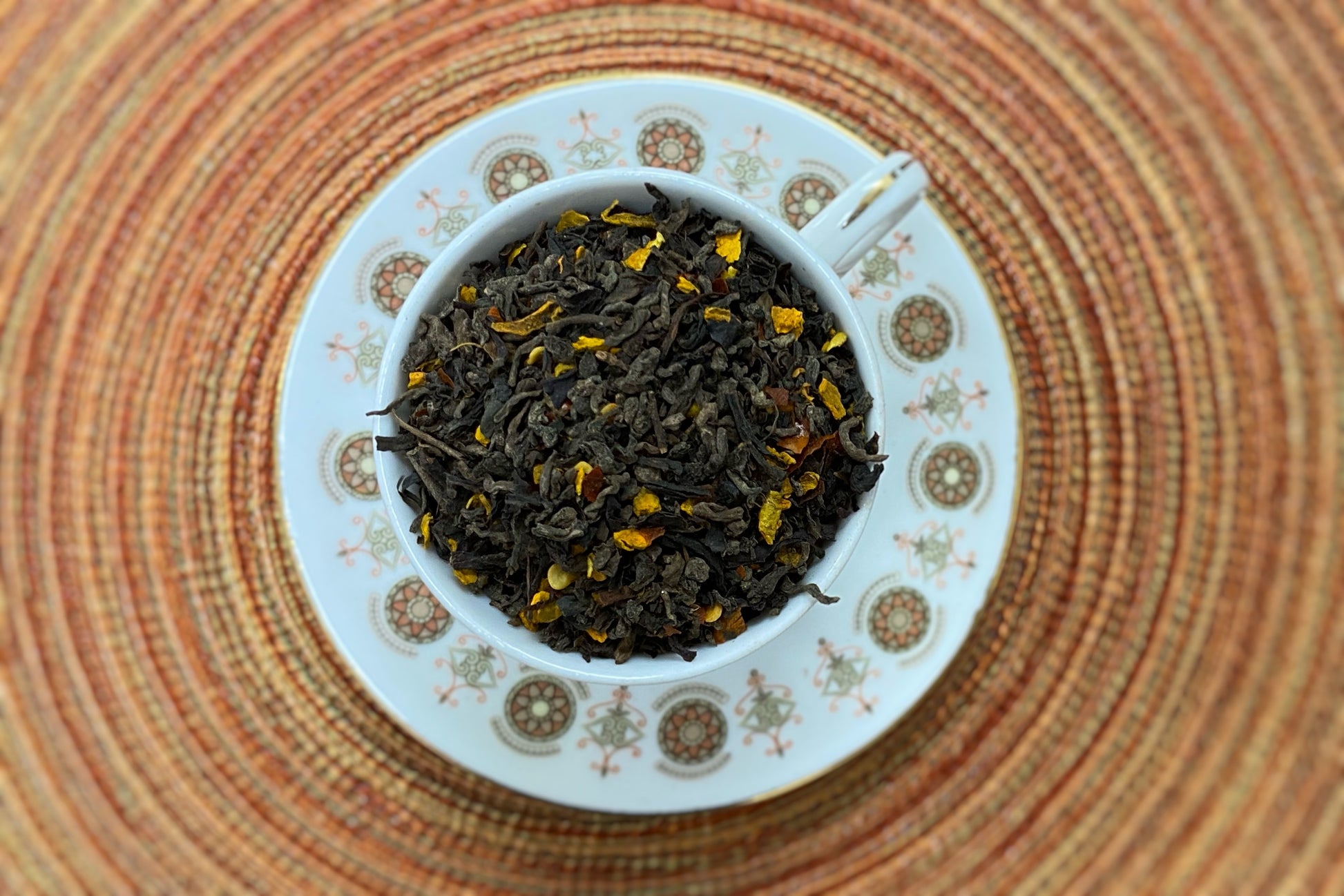 Ingredients: Aged dark tea, black teas, turmeric, red chili flake, safflower petal, natural flavoring, pine smoke