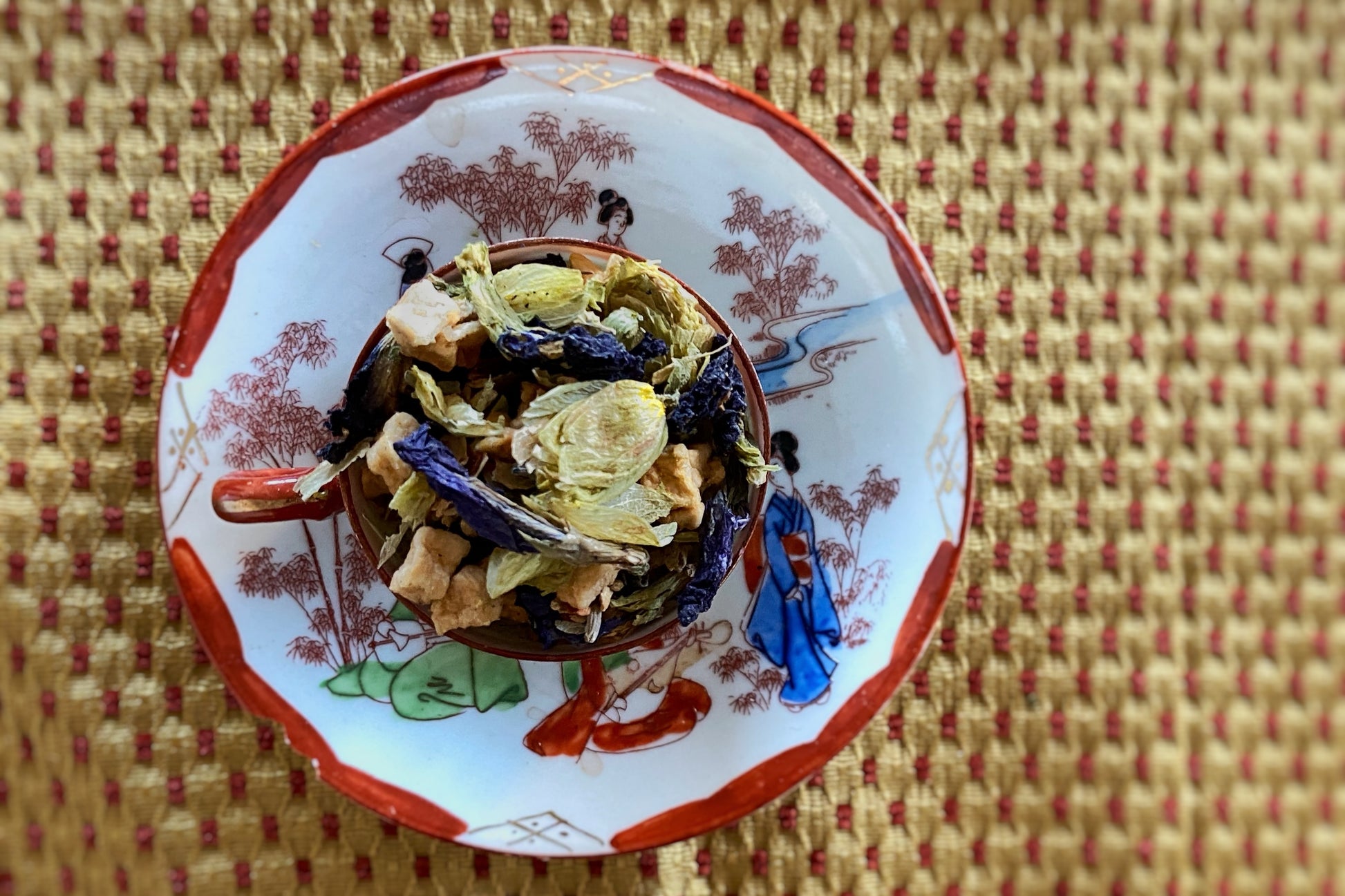 Ingredients: Apple, spicy ginger, blue pea flower, hops, lavender, red chili flake