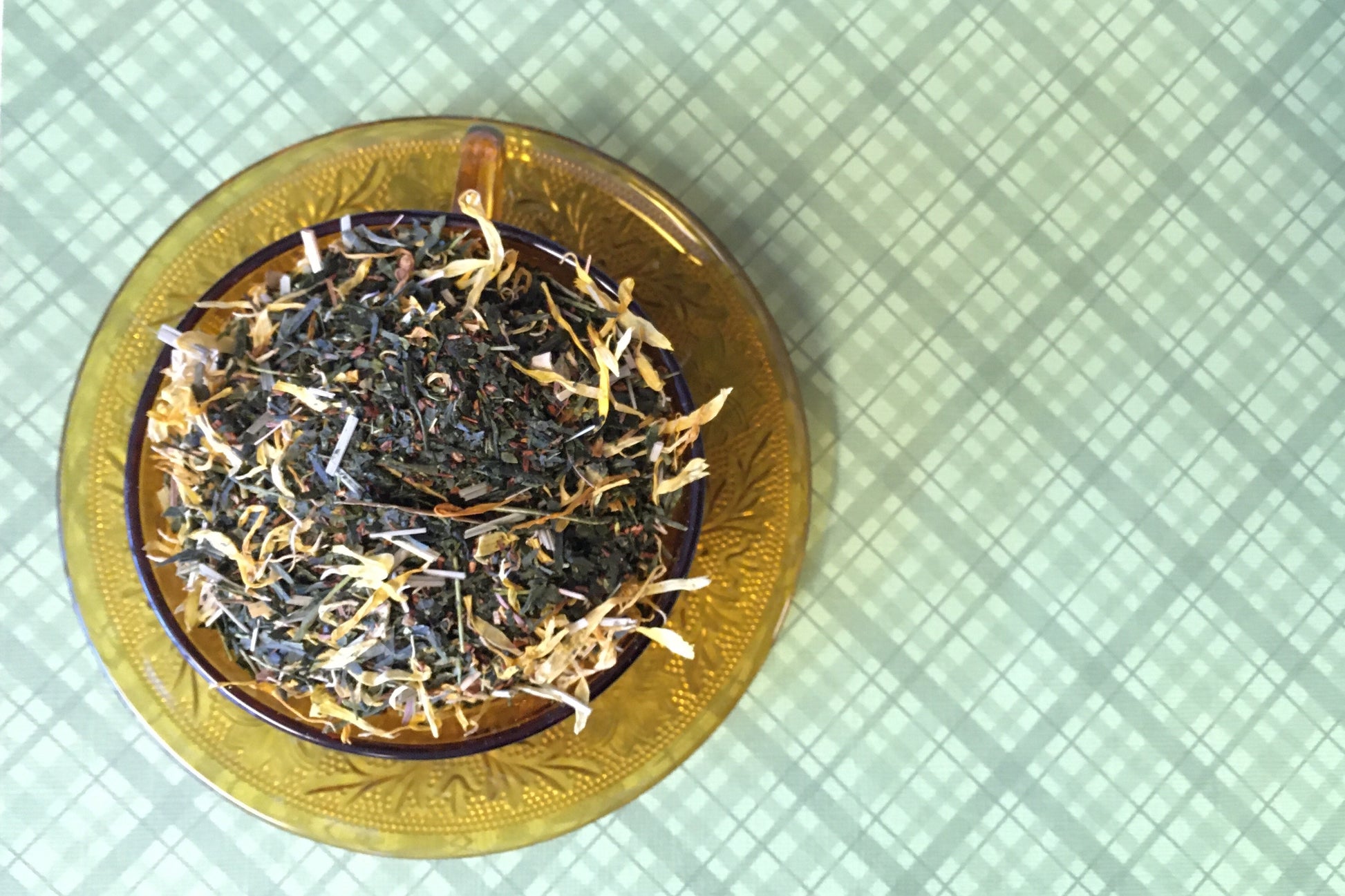 Ingredients: Green tea, rooibos, lemongrass, marigold, bergamot oil