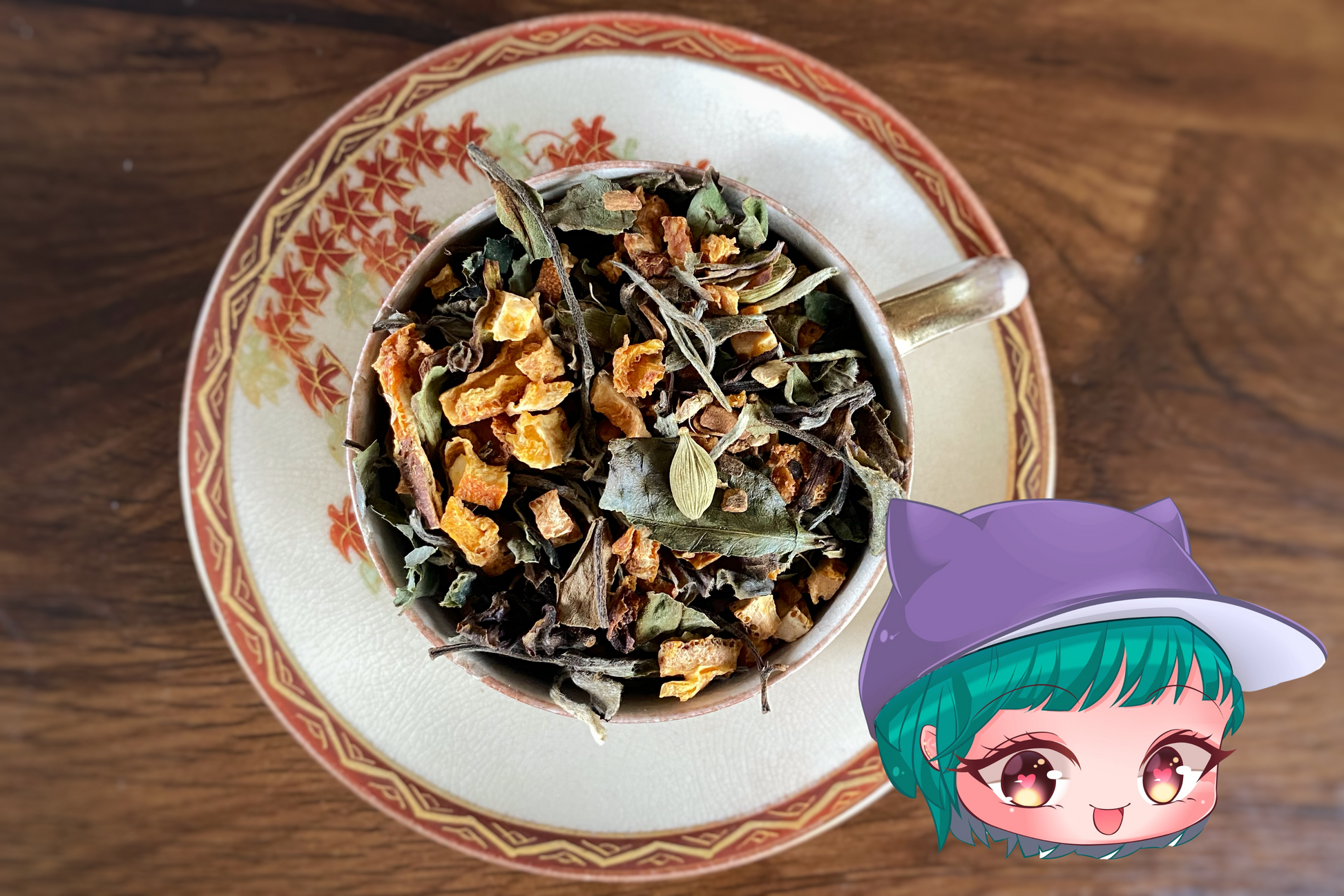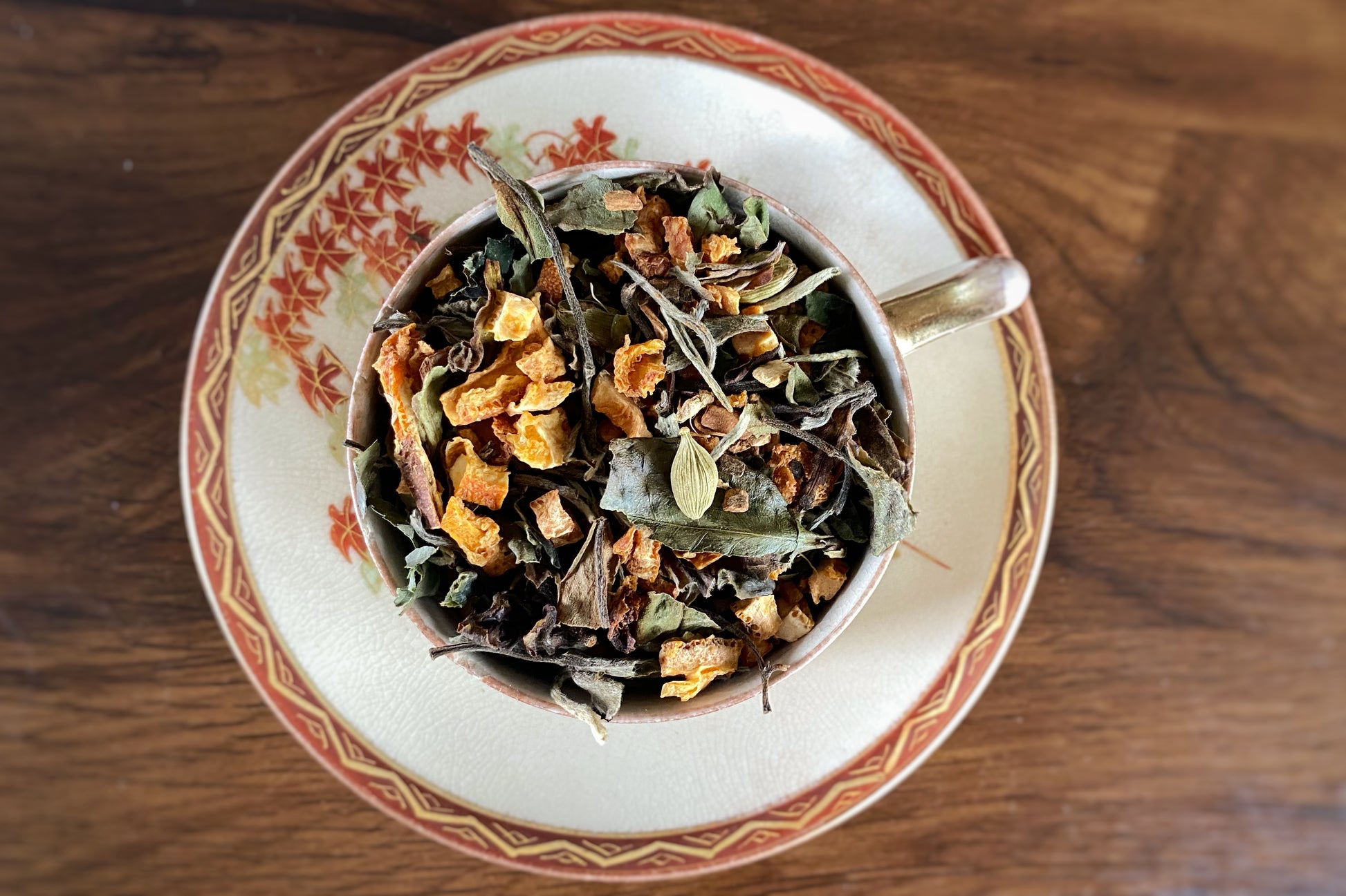 Ingredients: Cinnamon, orange peel, white tea, cardamom, ginger root, ancho chili, clove