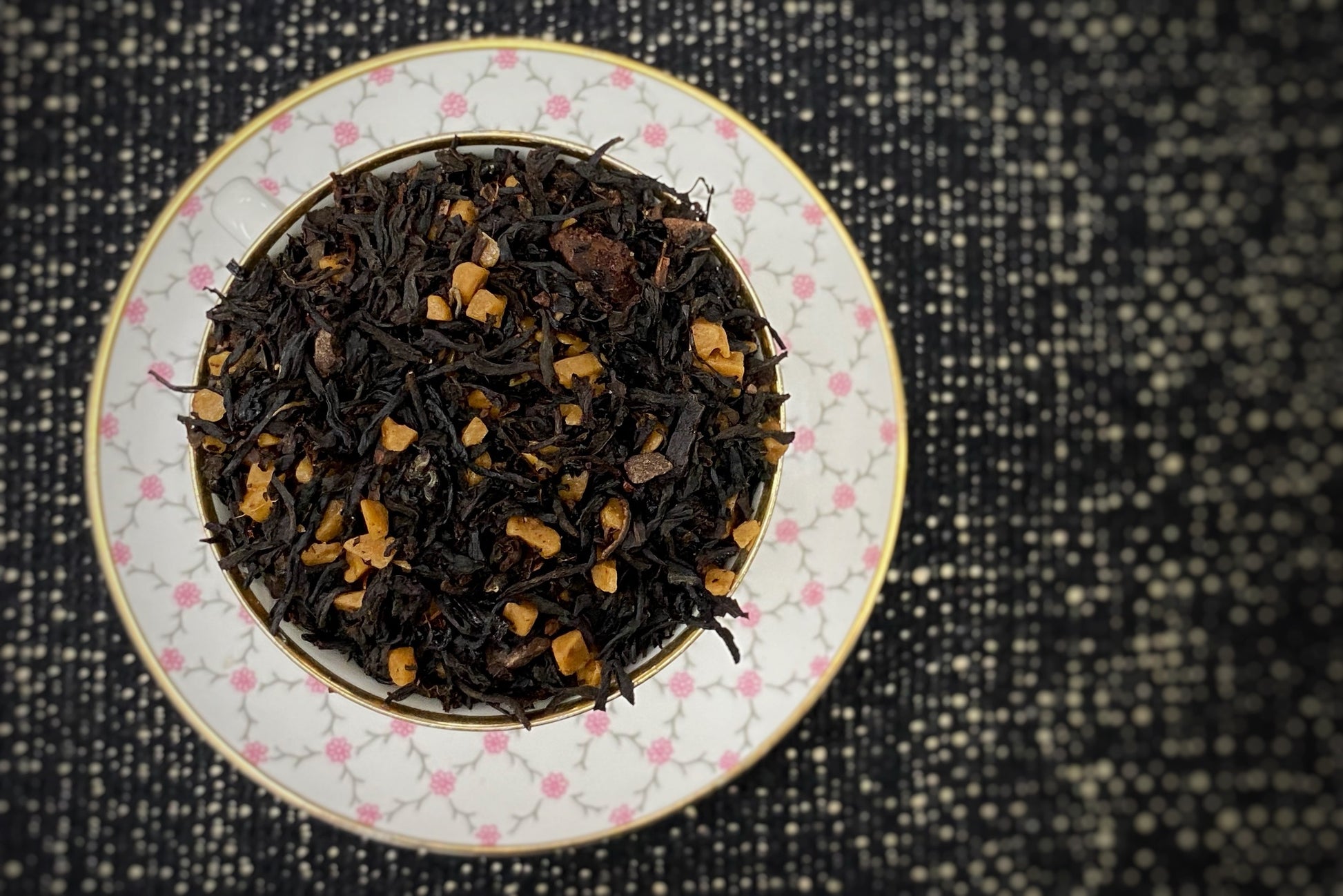 Ingredients: Black tea, toffee*, dark chocolate*, natural raspberry and chocolate fudge flavoring